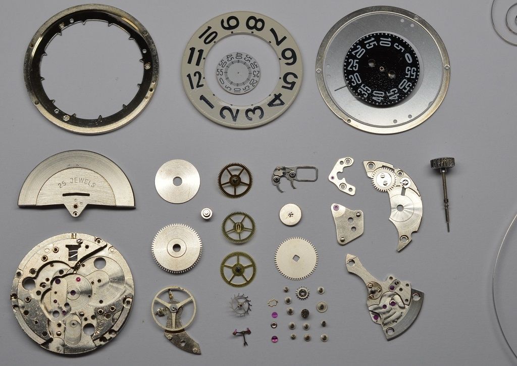 Das hier gezeigte Uhrwerk wurde bin in die 1980 er Jahre produziert, Ersatzteile sind aber heute noch gut lieferbar.